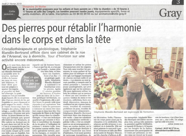« Madame Monsieur, Je me permets d’apporter mon témoignage suite à l’intervention de Madame Stéphanie Blandin Lamberti à mon domicile. Ma fille de 19 ans fait ses études à Dijon, elle y séjourne toute la semaine et aime bien revenir à la maison le week-end, la nature lui manque. Mais à chaque fois qu’elle revient, elle me dit papa, je me sens très mal ici. Je ne dors pas bien et je fais beaucoup de cauchemar. Je lui ai alors parlé de Stéphanie, je l’ai connu dans une association qui œuvre contre le cancer. Les nouveaux locaux angoissaient beaucoup la présidente de l’association. Il y avait une pièce où elle ne se sentait pas bien. Après l’intervention de Stéphanie, tout est rentré dans l’ordre. Je me suis donc décidé à faire appel à ses services. Lorsque Stéphanie est entrée dans la maison, elle a tout de suite détecté beaucoup de souffrance et de tristesse, également dans la chambre de ma fille. Elle m’a indiqué plusieurs endroits où elle ressentait ces troubles, ma femme est décédée d’un cancer et a séjourné en HAD à la maison. Stéphanie a travaillé toute la matinée, ce qui était très étrange pour moi, c’est que je ressentais beaucoup de gargouillis dans mon ventre. Stéphanie a libéré toutes les souffrances, également l’âme de ma femme pour lui permettre de continuer son chemin. Je l’en remercie. Maintenant, ma fille revient le week-end et ne ressent plus cette pression, ni cette tristesse, L’atmosphère est beaucoup plus apaisée. Ma sœur m’ayant fait la même remarque. Je remercie énormément Stéphanie pour son travail, sa compassion, son humanité. » CB.